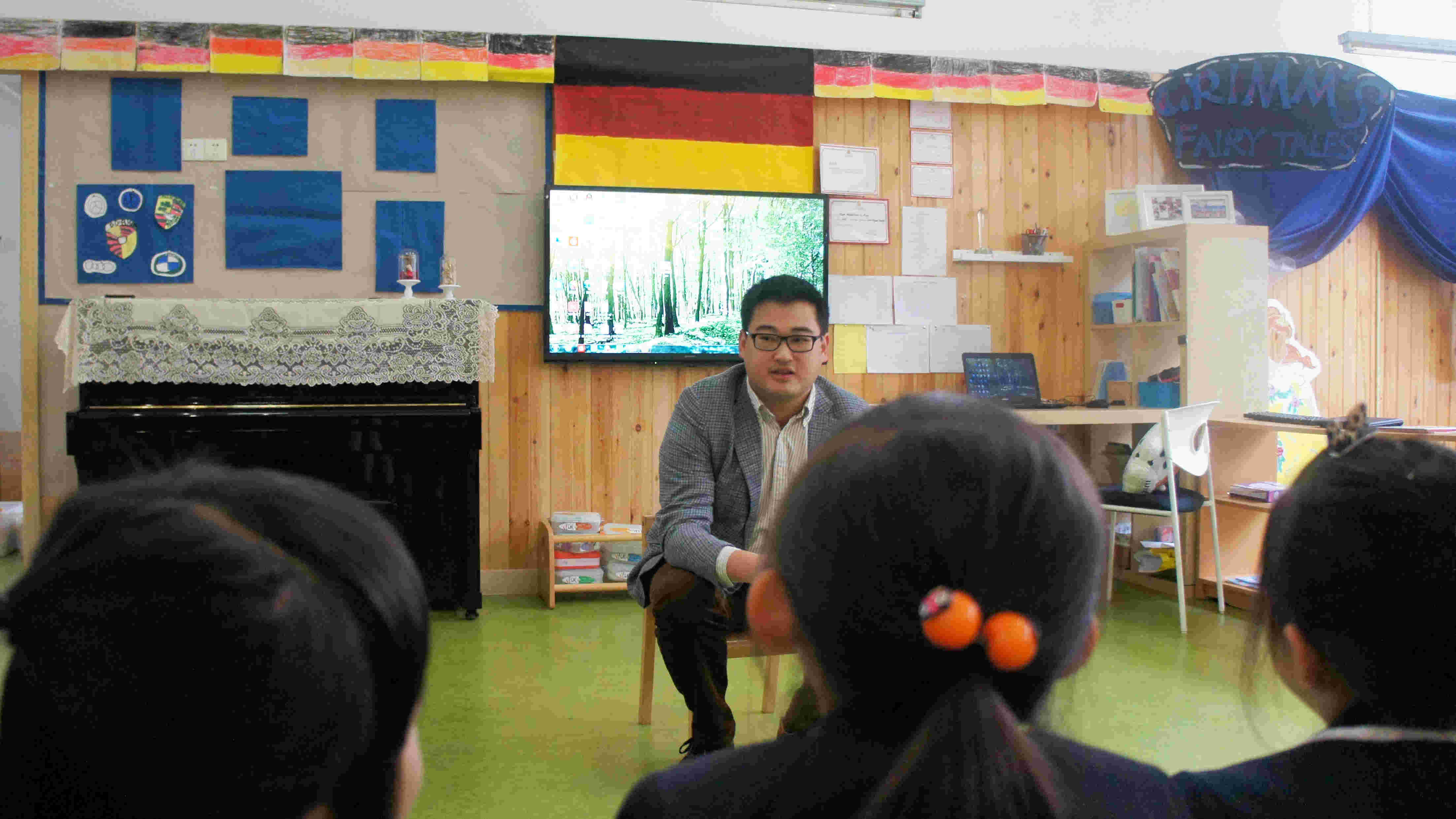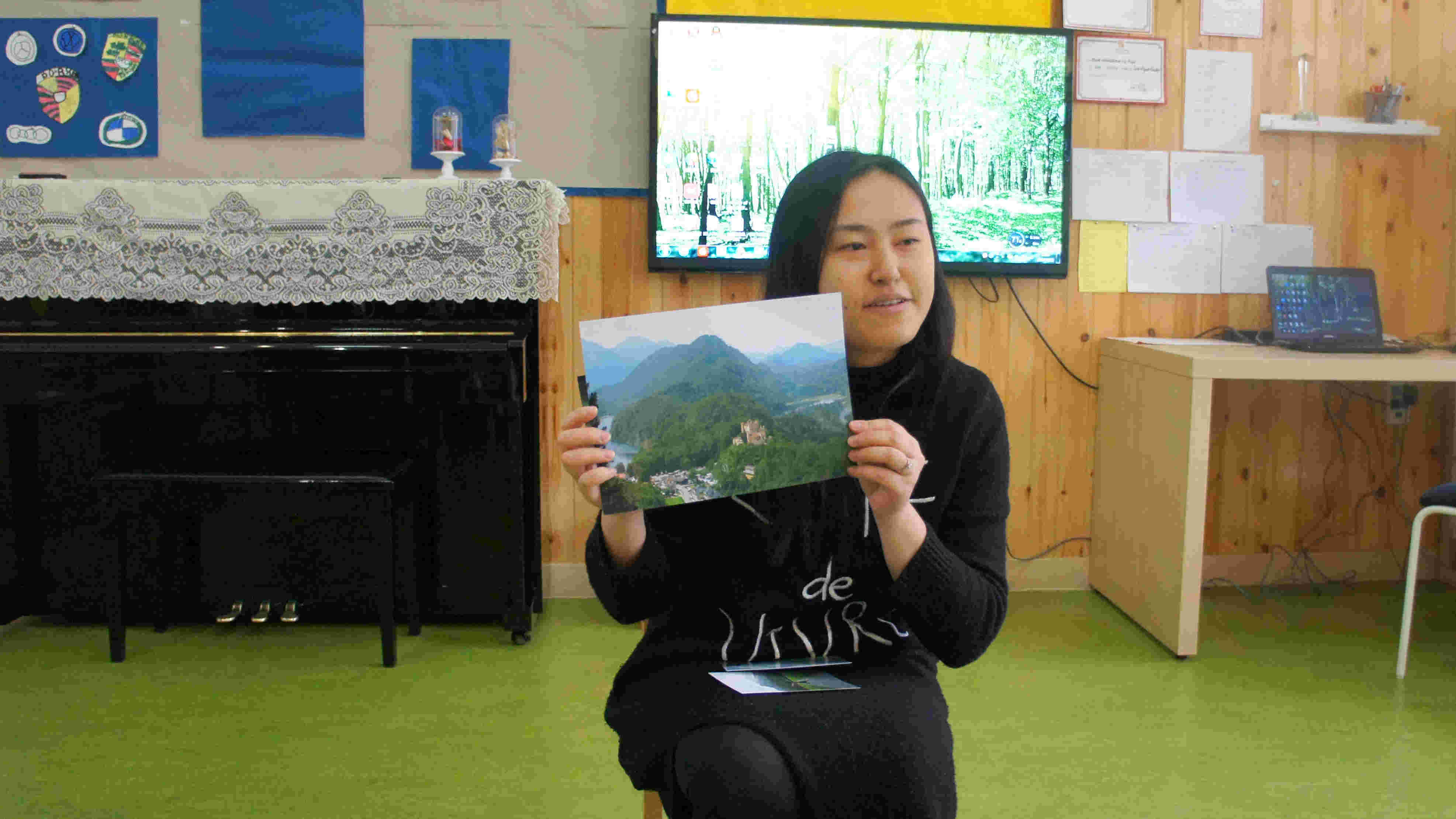 The first part is given by our mom and Dad "In Germany". Donny’s mother told a German street story, let the kids feel the German rigorous attitude of speaking and acting. Toby’s father in simple English for kids to introduced the new Swan Castle’s location and history. When the kids heard the original owner of castle is Sissi, they all want to go there. Elsa’s mother show the photos in Germany, especially the Alps, the beautiful mountains and rivers, fresh air, the herd of cows.