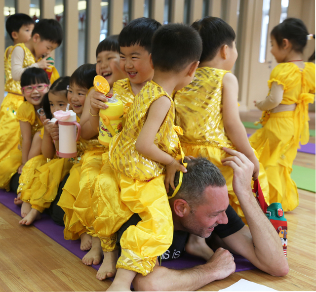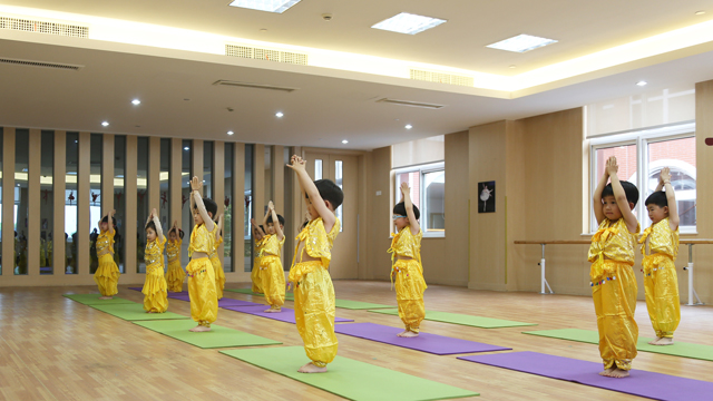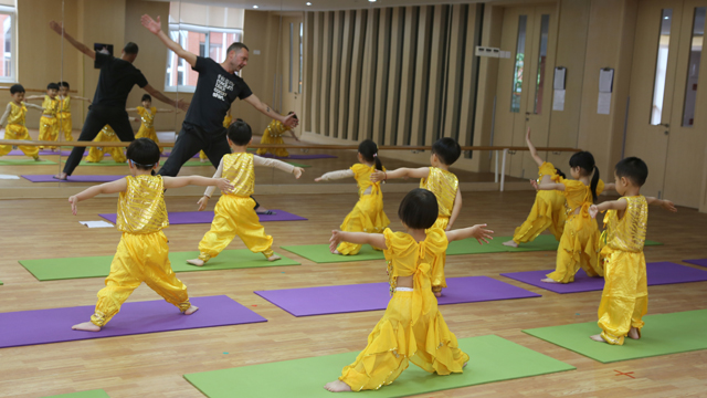 Yoga comes from ancient India .It is considered as a way to relax bodies. What kind of fun can yoga bring to children?That day Kay lead children to feel relax and smoothing feelings yoga brings.