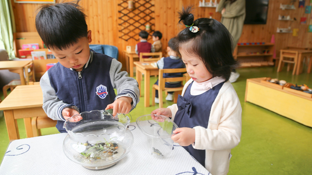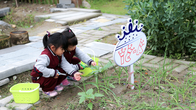 Besides, an activity called “Be a mother today” is organized to let children have a further understanding of what is love. Look! With the help of children, a beautiful home for little turtles is settled in the class. Children try their best to find food, aiming to feed them.They gather favorite foods for turtles by searching around the farm and then feed them with cooked meals.