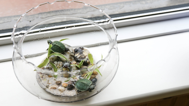 After it’s eaten, we can take them for a walk to have some fresh air. Children put them on starting line and find out which is the fastest. The turtle on the first track gets near the end, while the one on the second track is still at it's slow pace. Well, maybe next time. After taking turtles for a walk, they scrub their shells gently with small toothbrushes. Little turtles really enjoy the tender care from them.