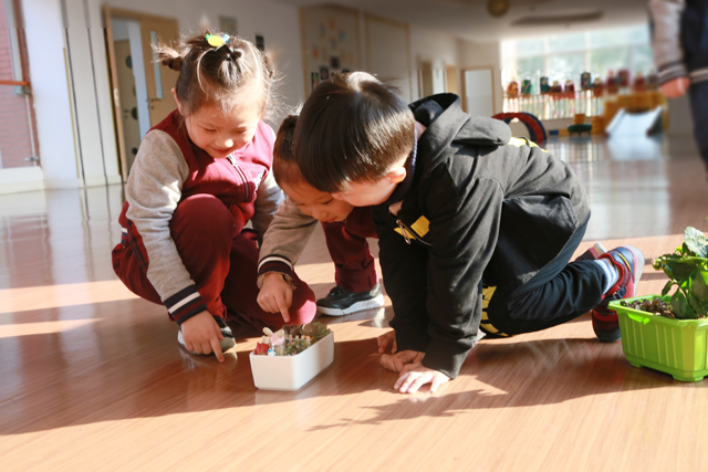 在这春暖花开、万物生长的季节,我们K1-B教室外面的自然角也悄然成立了,这个小小的角落,仿若成了一个生机勃勃的绿色生态园。瞧,错落有致的盆栽,可爱的乌龟、金鱼,各种欲发芽的种子宝宝,是不是让人有种“春色满园关不住”感受呢!瞧,忙的不亦乐乎的K1-B小伙伴们!