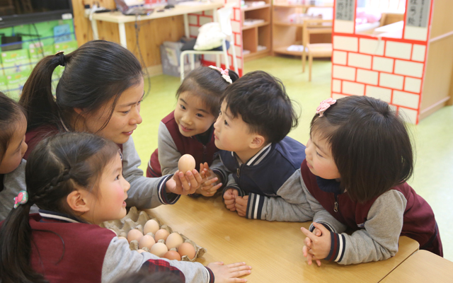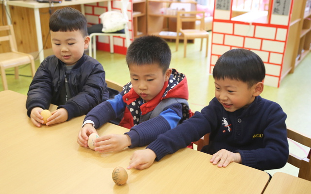 “立蛋”游戏的开展,孩子们不仅在活动中体验到了快乐,也了解了中国的民俗。孩子们在实践中成长,在玩中学,在尝试中见证“奇迹”。