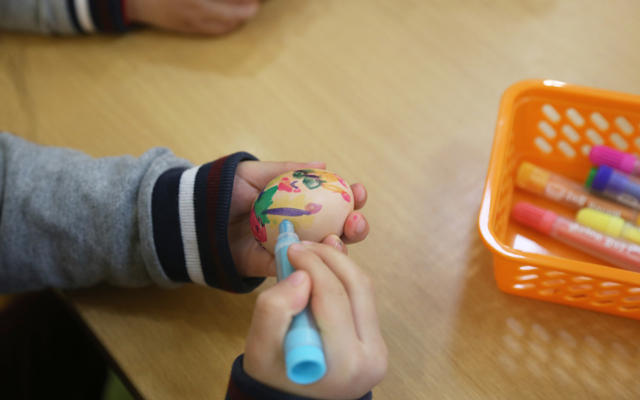 一大早,孩子们就纷纷从家里带来了准备好的鸡蛋,在老师讲解了春分的起源、习俗与立蛋的玩法后,孩子们都迫不及待地准备大展身手。大家在上面将自己心目中的春天画了上去,有的孩子觉得春天是穿着红色裙子的小公主;有的孩子觉得各种颜色的泡泡就像五彩的春天;还有的孩子将红花绿草都展现在了鸡蛋上。鸡蛋在孩子们的手里变成了独一无二的春天景象。